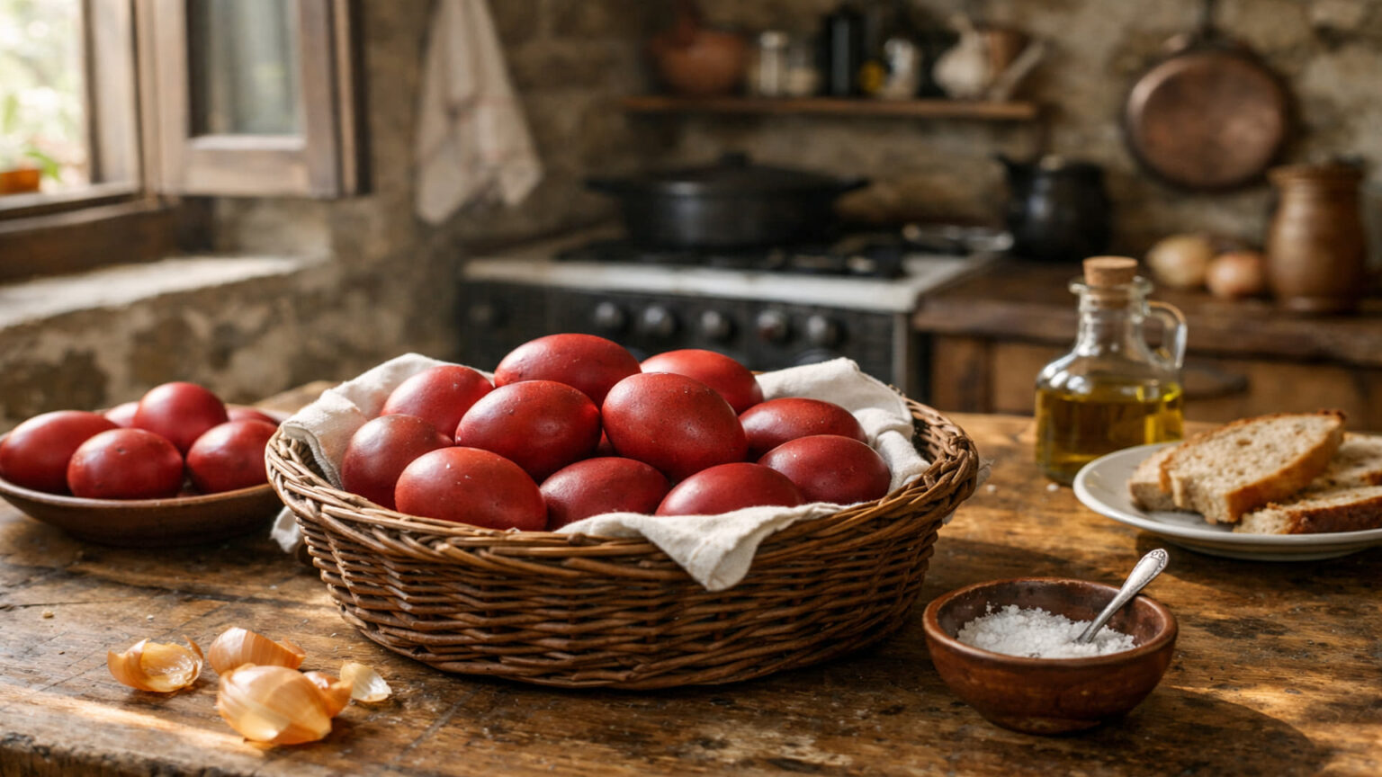 Der Morgen des Gründonnerstags beginnt in unzähligen Familien mit dem klassischen Eierfärben. Während industrielle Farben mittlerweile weit verbreitet sind, greifen Bewohner in vielen ländlichen Gebieten Griechenlands weiterhin auf natürliche Rohstoffe zurück. Zutaten wie Rote Bete, Zwiebelschalen oder Spinat kommen zum Einsatz, um den Eiern ihre charakteristische Färbung zu verleihen. Dieser traditionelle Vorgang symbolisiert in der griechisch-orthodoxen Kirche das Leben und die spirituelle Wiedergeburt.