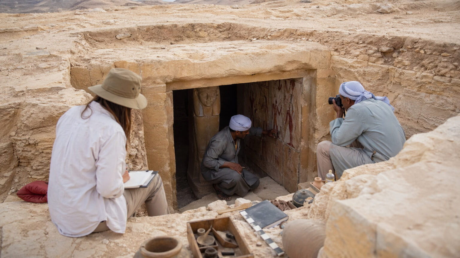Laut einem Bericht der britischen Zeitung Independent stießen die Wissenschaftler des Instituts für Studien des Alten Orients der Universität Barcelona während einer Ausgrabungskampagne zwischen November und Dezember 2025 auf das seltene Relikt. Die archäologischen Arbeiten konzentrierten sich auf die Überreste der antiken Stadt Oxyrhynchus, die zur Zeit der Pharaonen unter dem Namen Per-Medjed bekannt war. Diese Metropole befand sich in der heutigen Ortschaft Al-Bahnasa, rund 190 Kilometer südlich von Kairo am Ufer des Nebenflusses Bahr Yusef.