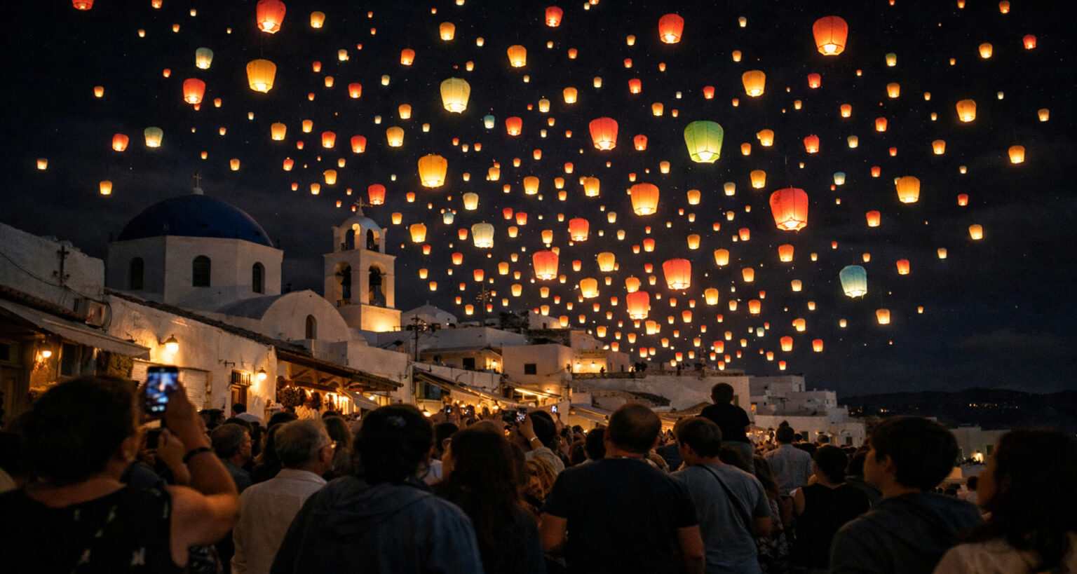 - Die Gemeinde Leonidio lässt zur Auferstehung hunderte bunte Heißluftballons aufsteigen.