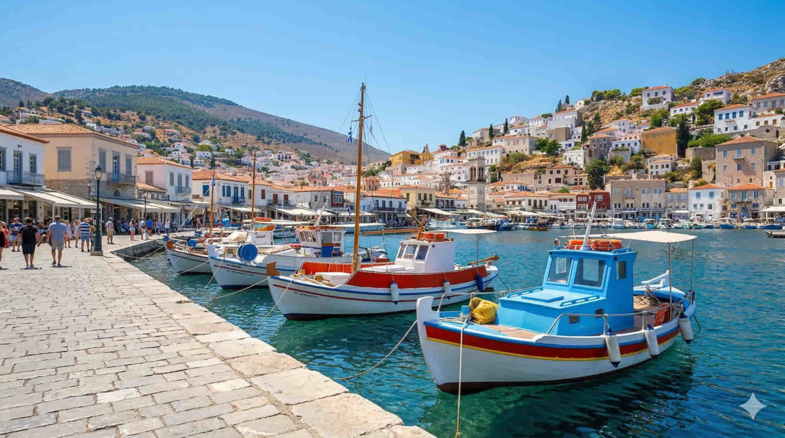Die Inselwelt des Saronischen Golfs bietet weitere prägnante Kontraste zum städtischen Leben. Die Insel Hydra zeichnet sich durch eine vollständig autofreie Umgebung aus. Die traditionelle steinerne Architektur und die weitreichenden kopfsteingepflasterten Straßen prägen das optische Erscheinungsbild dieser Inselgemeinde. Entlang der weiten Küste und am lebhaften Hafenbecken befinden sich zahlreiche traditionelle Tavernen, die vorwiegend lokale Meeresspezialitäten servieren.