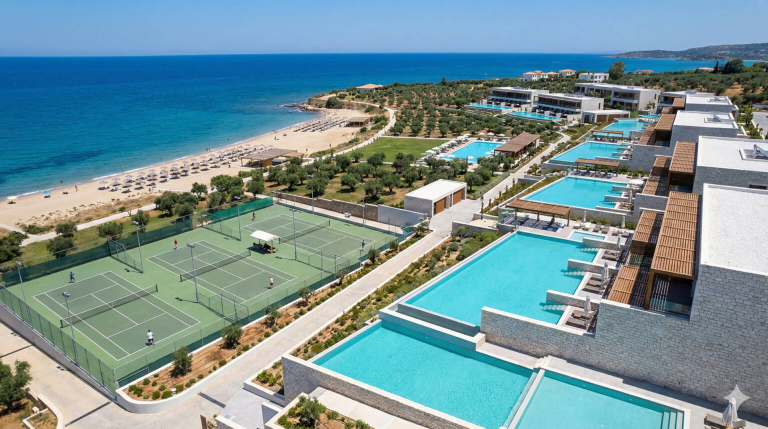 Für kinderreiche Familien positioniert das Unternehmen das Lyttos Beach auf Kreta als zentrale Option. Diese Anlage verfügt über geräumige Unterkünfte mit zwei Schlafzimmern sowie ein breites Angebot an Sport- und Freizeitaktivitäten, darunter eine Tennisakademie und ein Kinderclub.