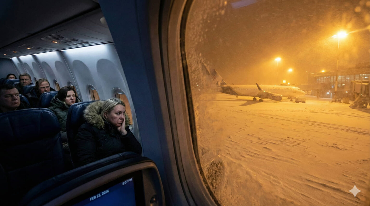 Οι διαρκείς ενημερώσεις από τα πληρώματα προς τους ταξιδιώτες ανέφεραν συνεχείς καθυστερήσεις λόγω της έντονης χιονόπτωσης, μια διαδικασία αναμονής που διήρκεσε σχεδόν δυόμισι ώρες. Τελικά, η οριστική ακύρωση της πτήσης ανακοινώθηκε λίγα λεπτά πριν τα μεσάνυχτα, και συγκεκριμένα στις 23:56. Εκείνη ακριβώς τη στιγμή, οι διαδικασίες για την ασφαλή αποβίβαση και τη μεταφορά των ανθρώπων πίσω στις κεντρικές εγκαταστάσεις βρέθηκαν σε απόλυτο επιχειρησιακό αδιέξοδο.