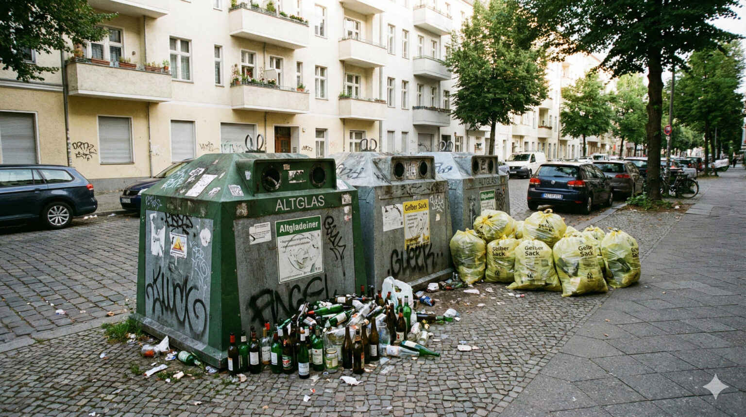 Ανησυχητικά είναι τα ευρήματα και για το γυαλί, όπου οι στόχοι ανακύκλωσης για το 2024 δεν επετεύχθησαν. Οι ειδικοί αποδίδουν την πτώση σε δύο παράγοντες: την ελλιπή διαλογή ανά χρώμα, ειδικά στις μεγάλες πόλεις, και τη μείωση των σημείων συλλογής (Glascontainer). Όταν οι πολίτες δεν βρίσκουν κοντά τους κάδο γυαλιού, αυξάνεται η πιθανότητα να πετάξουν τα μπουκάλια στα κοινά σκουπίδια. Η Bettina Rechenberg πρότεινε την τοποθέτηση κάδων γυαλιού στα πάρκινγκ των σούπερ μάρκετ ως λύση διευκόλυνσης.