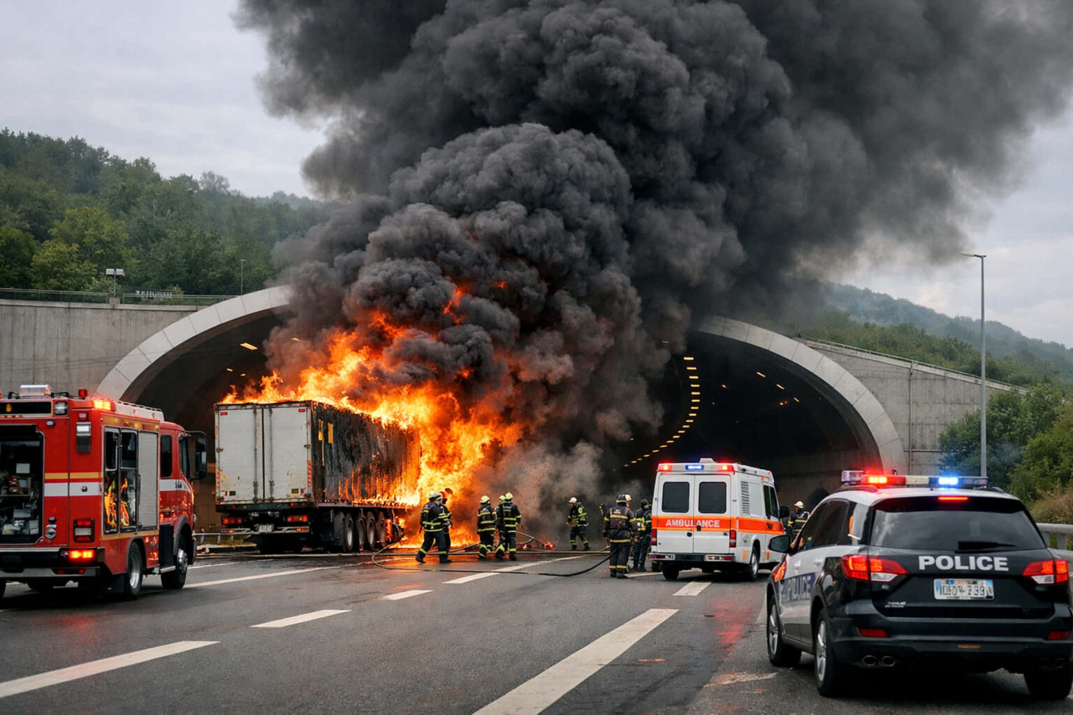 Τα σωστικά συνεργεία που κατέφθασαν στο σημείο βρέθηκαν αντιμέτωπα με μια εξαιρετικά δύσκολη και επικίνδυνη κατάσταση, καθώς δεκάδες διερχόμενοι οδηγοί αναγκάστηκαν να εγκαταλείψουν τα αυτοκίνητά τους μέσα στη σήραγγα για να σωθούν. Οι διασώστες παρείχαν τις πρώτες βοήθειες και ψυχολογική υποστήριξη σε συνολικά τριάντα άτομα στον τόπο του συμβάντος. Από αυτούς, οι τρεις ασθενείς χρειάστηκε να διακομιστούν εσπευσμένα σε τοπικό νοσοκομείο για περαιτέρω ιατρική παρακολούθηση, ενώ ένας ακόμη οδηγός, αν και εμφανώς τραυματισμένος, αρνήθηκε πεισματικά τη μεταφορά του σε ιατρικό ίδρυμα.
