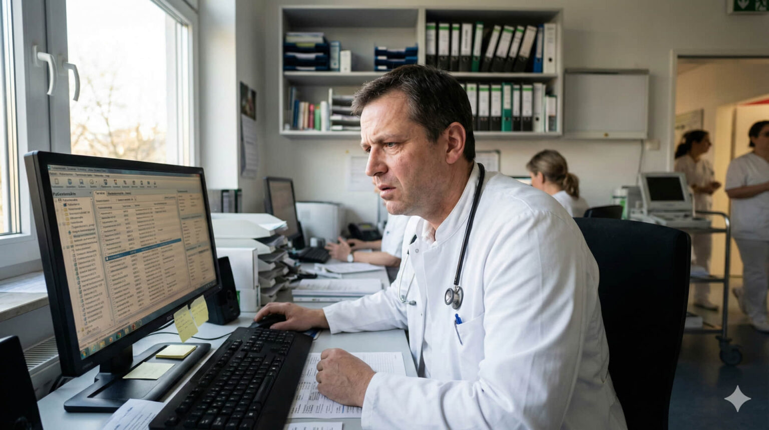 Η καθημερινότητα των γιατρών έχει επιβαρυνθεί σημαντικά, καθώς καλούνται να διαχειριστούν έναν όγκο πληροφοριών που δεν είναι κατάλληλα ταξινομημένος για ιατρική χρήση. Σύμφωνα με τον Markus Beier, ο ηλεκτρονικός φάκελος θυμίζει περισσότερο μια «αταξινόμητη συλλογή αρχείων PDF», η οποία έχει ελάχιστη πρακτική αξία κατά τη διάρκεια της εξέτασης. Οι ιατροί αναγκάζονται να αφιερώνουν πολύτιμο χρόνο προσπαθώντας να εντοπίσουν κρίσιμα δεδομένα μέσα σε σωρεία εγγράφων, καθώς απουσιάζει η δυνατότητα πλήρους αναζήτησης κειμένου (Volltextsuche). Αυτή η τεχνική έλλειψη μετατρέπει ένα εργαλείο που σχεδιάστηκε για να επιταχύνει τις διαδικασίες σε πηγή καθυστερήσεων και διοικητικού φόρτου.