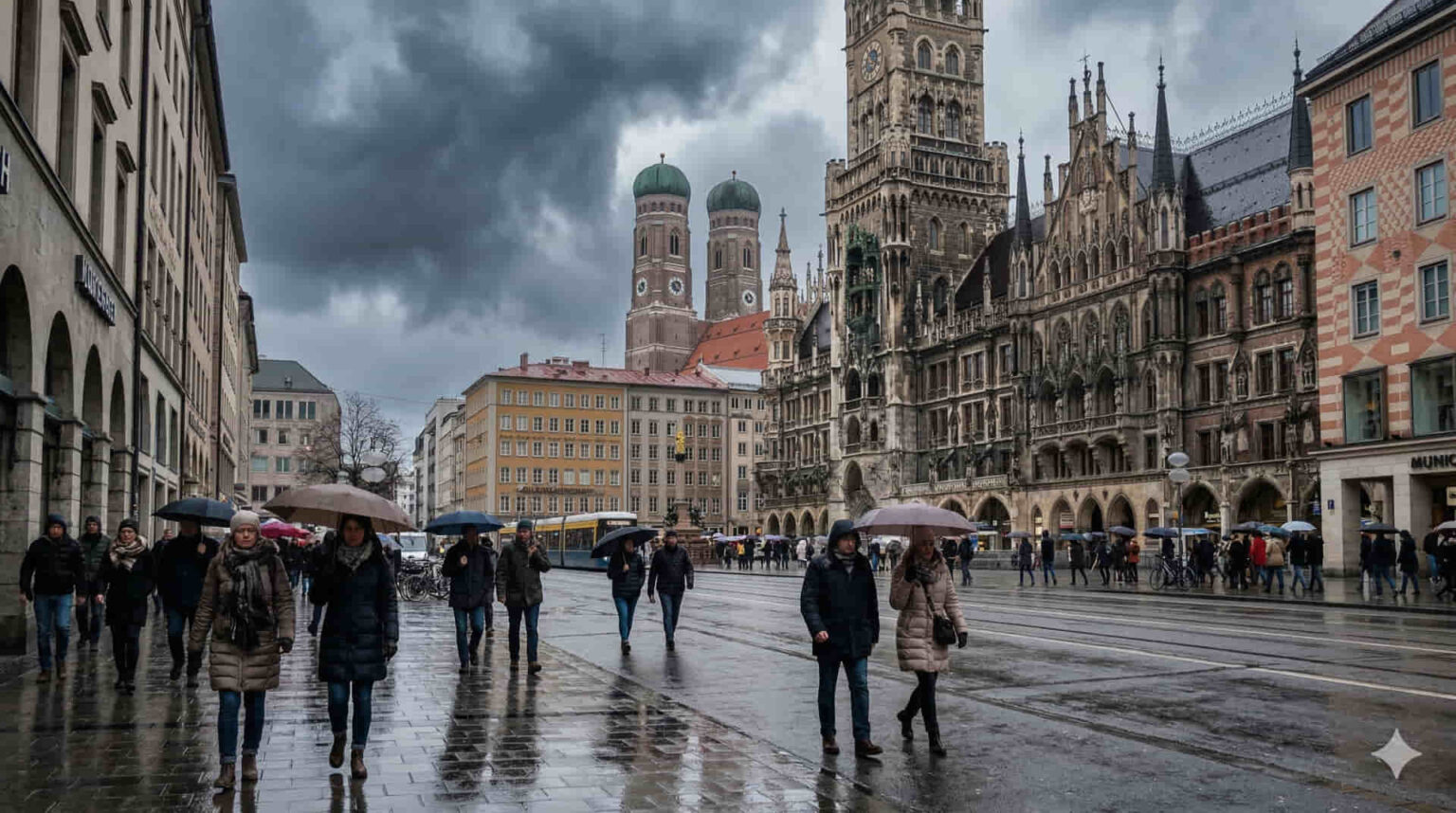 Η μετάβαση από τον αίθριο καιρό στο τσουχτερό κρύο αναμένεται να γίνει αισθητή ήδη από το Σάββατο, με τη θερμοκρασία να μην ξεπερνά τους δώδεκα βαθμούς, ενώ την Κυριακή θα περιοριστεί στους έξι βαθμούς Κελσίου. Για τη βαυαρική πρωτεύουσα, η οποία βρίσκεται σε υψόμετρο πεντακοσίων είκοσι μέτρων, οι ειδικοί προβλέπουν κυρίως βροχές που ενδέχεται να μετατραπούν σε βαρύ, υγρό χιόνι, χωρίς ωστόσο να αναμένεται σημαντική χιονόστρωση εντός του αστικού ιστού.