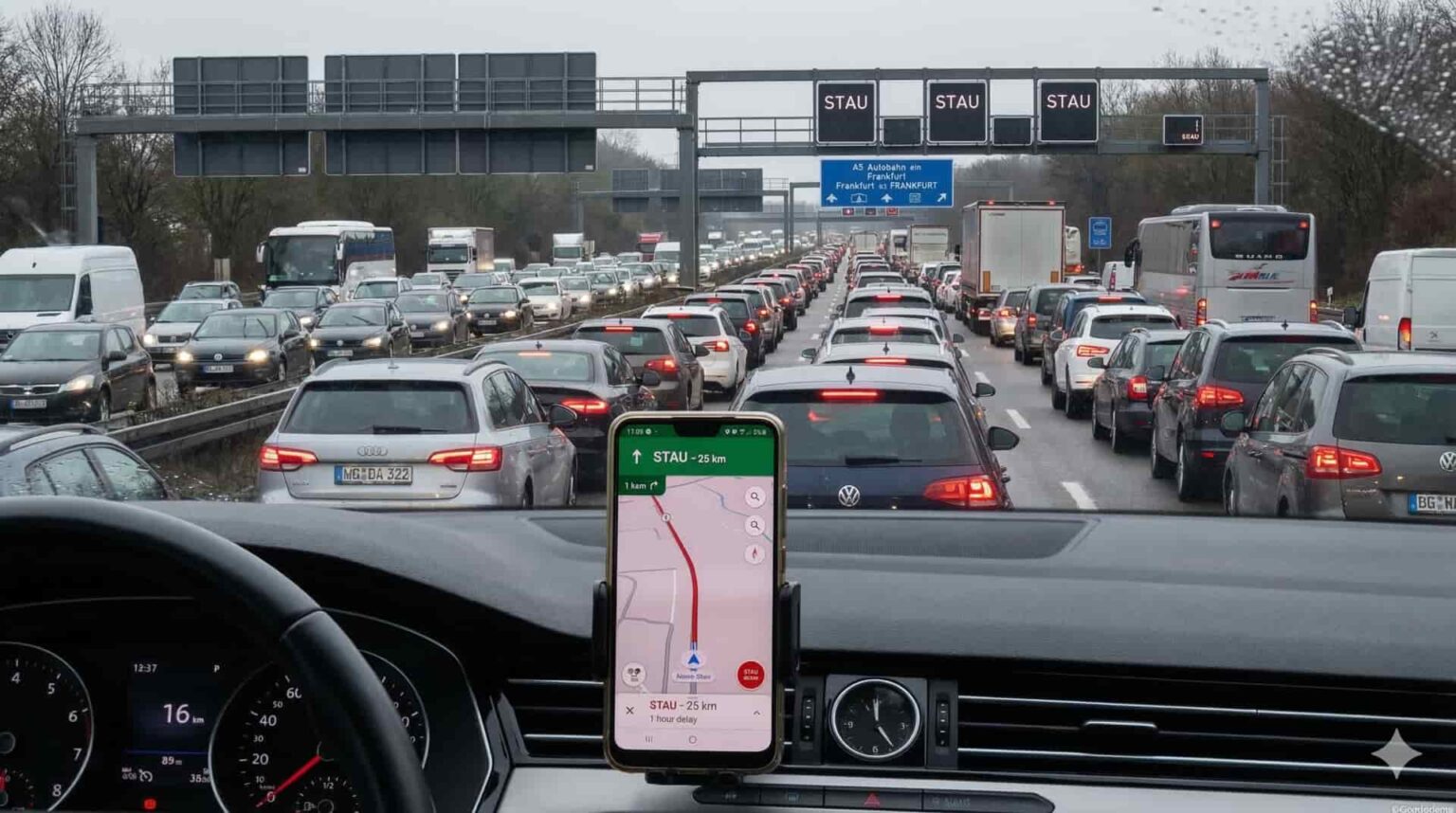 Λεβερκούζεν – Μια πρωτοφανής κυκλοφοριακή συμφόρηση προκλήθηκε το απόγευμα της Τρίτης στο οδικό δίκτυο της περιοχής, εξαιτίας μιας λανθασμένης ένδειξης σε δημοφιλή εφαρμογή πλοήγησης.