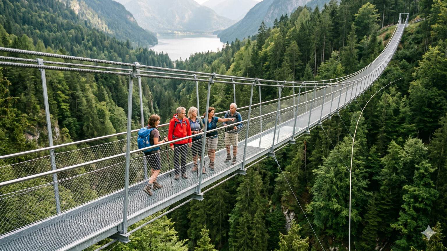 Εγκαταλείποντας οριστικά τη διέλευση από το πιο επικίνδυνο χαμηλό σημείο της χαράδρας, κορυφαίοι μηχανικοί κατασκεύασαν μια σύγχρονη πανοραμική γέφυρα, η οποία αιωρείται κυριολεκτικά πάνω από το ρέμα και ενώνει τις απότομες πλαγιές της χερσονήσου Bodanrück. Το νέο αυτό τεχνικό επίτευγμα απαιτεί από τους επίδοξους πεζοπόρους να ανέβουν 280 ειδικά διαμορφωμένα σκαλοπάτια, καλύπτοντας μια υψομετρική διαφορά 56 μέτρων, ενώ ταυτόχρονα πέντε ξεχωριστές πλατφόρμες παρατήρησης προσφέρουν απολύτως ασφαλή σημεία στάσης και φωτογράφισης. Η θέα από τα ψηλότερα επίπεδα ανοίγεται πλέον ανεμπόδιστη προς τα βαθιά, γαλαζοπράσινα νερά της Bodensee, κόβοντας την ανάσα σε κάθε βήμα. Η μετάβαση είναι εντυπωσιακή και εξαιρετικά ασφαλής.